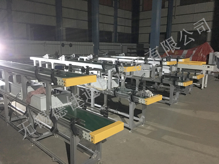 流水線運轉有:輸送機、皮帶輸送機、鏈板輸送機、爬坡輸送機以及伸縮輸送機等。
